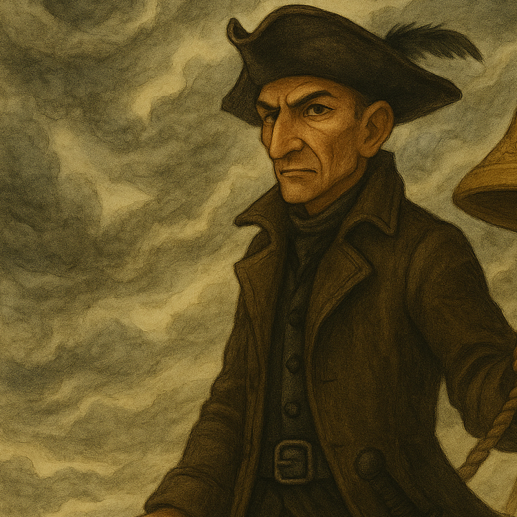 Über Kapitän Krähenschreck wird viel erzählt, und doch weiß kaum jemand, was wirklich wahr ist. Man sagt, er erscheine wie ein dunkler Schatten auf den Wellen, sein Schiff sei so schwarz wie die Nacht und die Rufe der Krähen begleiteten seine Spur über das Meer. Schon sein Name genügt, um Seefahrer unruhig werden zu lassen.